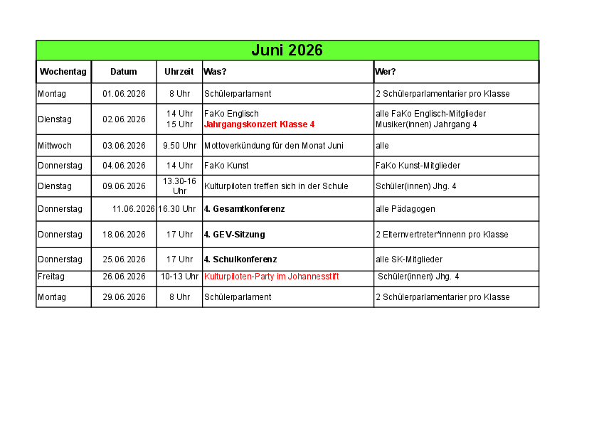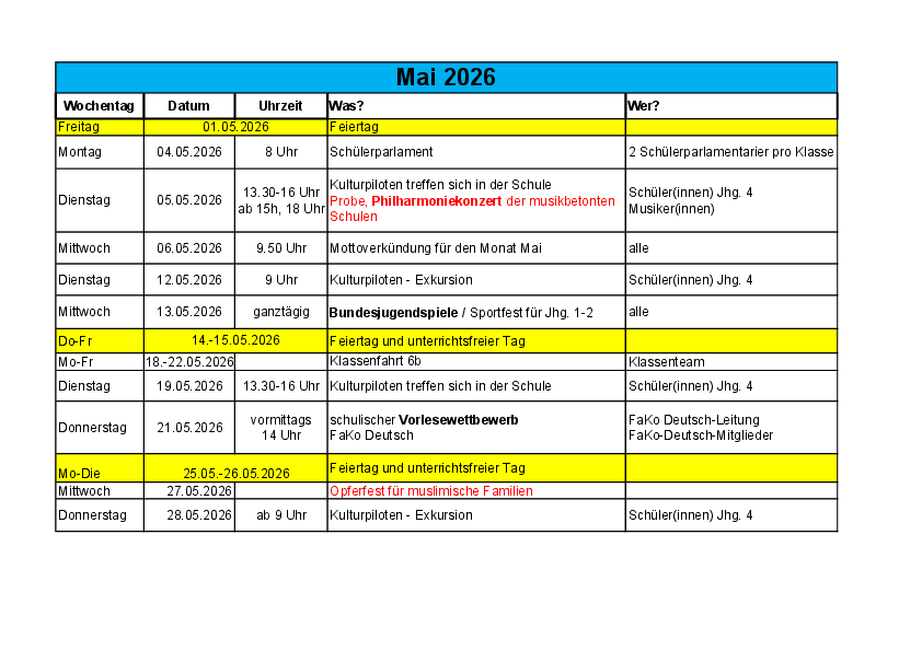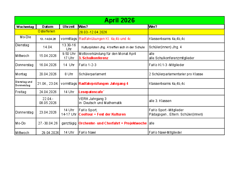 Terminplanung Humboldthain Grundschule 2026