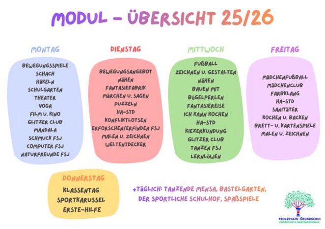 Grundlegendes Ziel unserer Angebotszeit ist es, die Entwicklung der Kinder individuell zu fördern. Sie erhalten viele Möglichkeiten die eigenen Interessen zu vertiefen oder Neues kennenzulernen. Die AG-Bänder werden durch das Integrations-, Schulsozialarbeits- und ETEP-Team der Humboldthain Grundschule, sowie durch externe Kooperationspartner unterstützt.