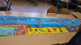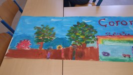 Die Kinder haben ein großes Bild zum Thema "Urlaub in Corona-Zeit" gestaltet.