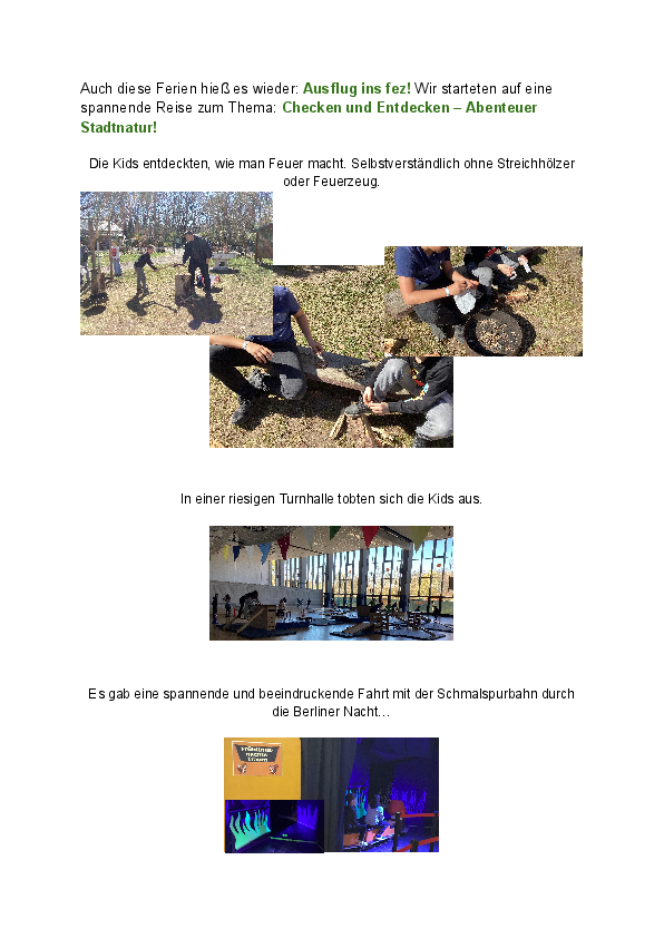 Wochenbericht Ferienbetreuung
