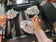 Nachdem die Kinder durch den Pfeffer-Wasser-Test nicht nur etwas über die Oberflächenspannung von Wasser und die Wirkungsweise von Seife lernen konnten, tobten sie sich danach mit ganz viel Glitzer und Farbe aus.