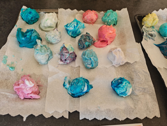 Ostereier färben mit Rasierschaum? Ja, es geht sogar ziemlich gut. Die Eier kochen, 5 Minuten in Essig einlegen und los geht's. Rasierschaum auf einem Blech oder Teller, Rasierschaum oben drauf und Lebensmittelfarbe darf natürlich nicht fehlen. Jetzt die Eier darin wälzen, bis einem das Muster gefällt und jetzt heißt es eine Stunde warten. Den restlichen Rasierschaum runternehmen und fertig sind die Ostereier.