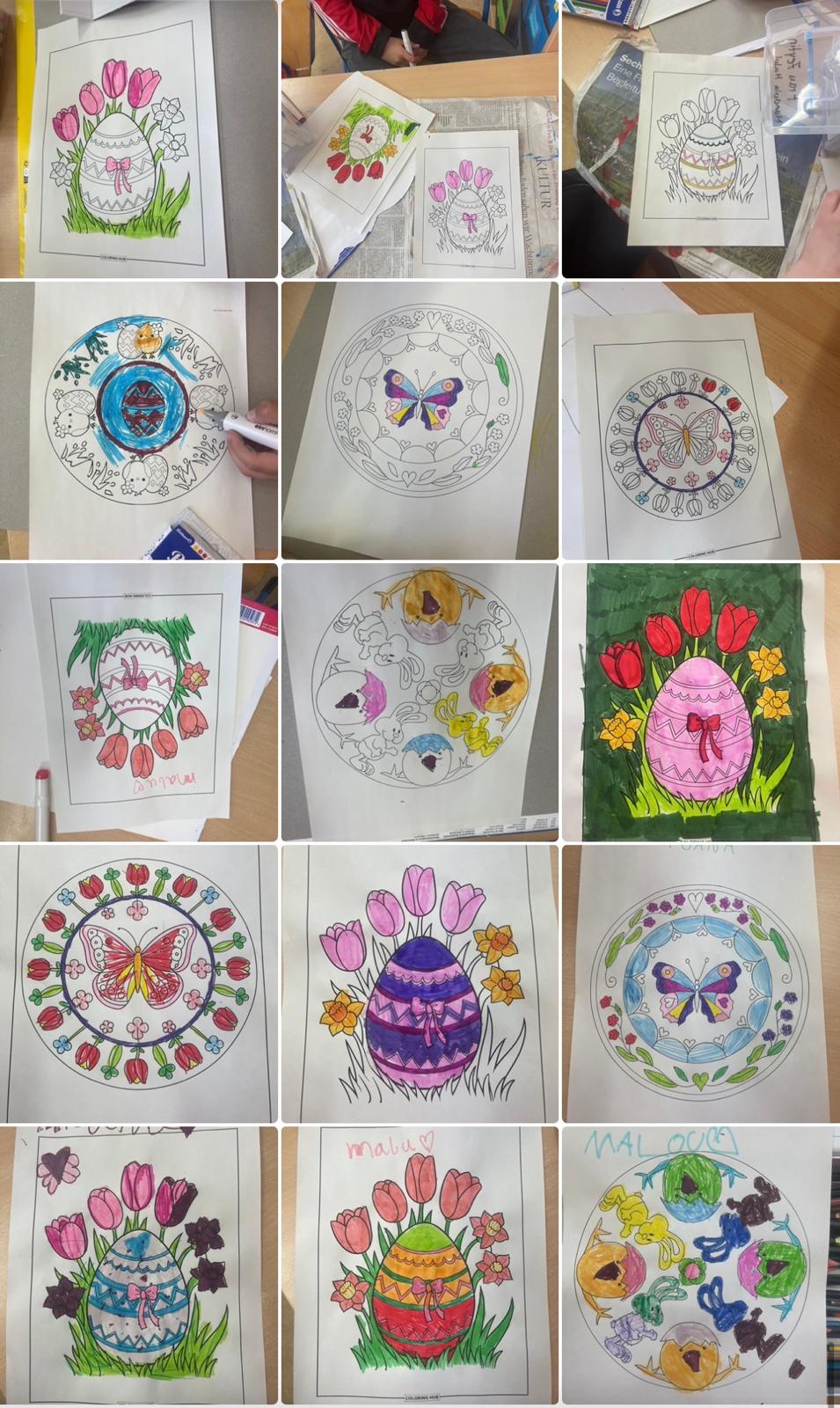 Kreativer Ferienspaß rund um Ostern: Kinder gestalten bunte Eier, Blumen und Mandalas ganz nach ihrer Fantasie.