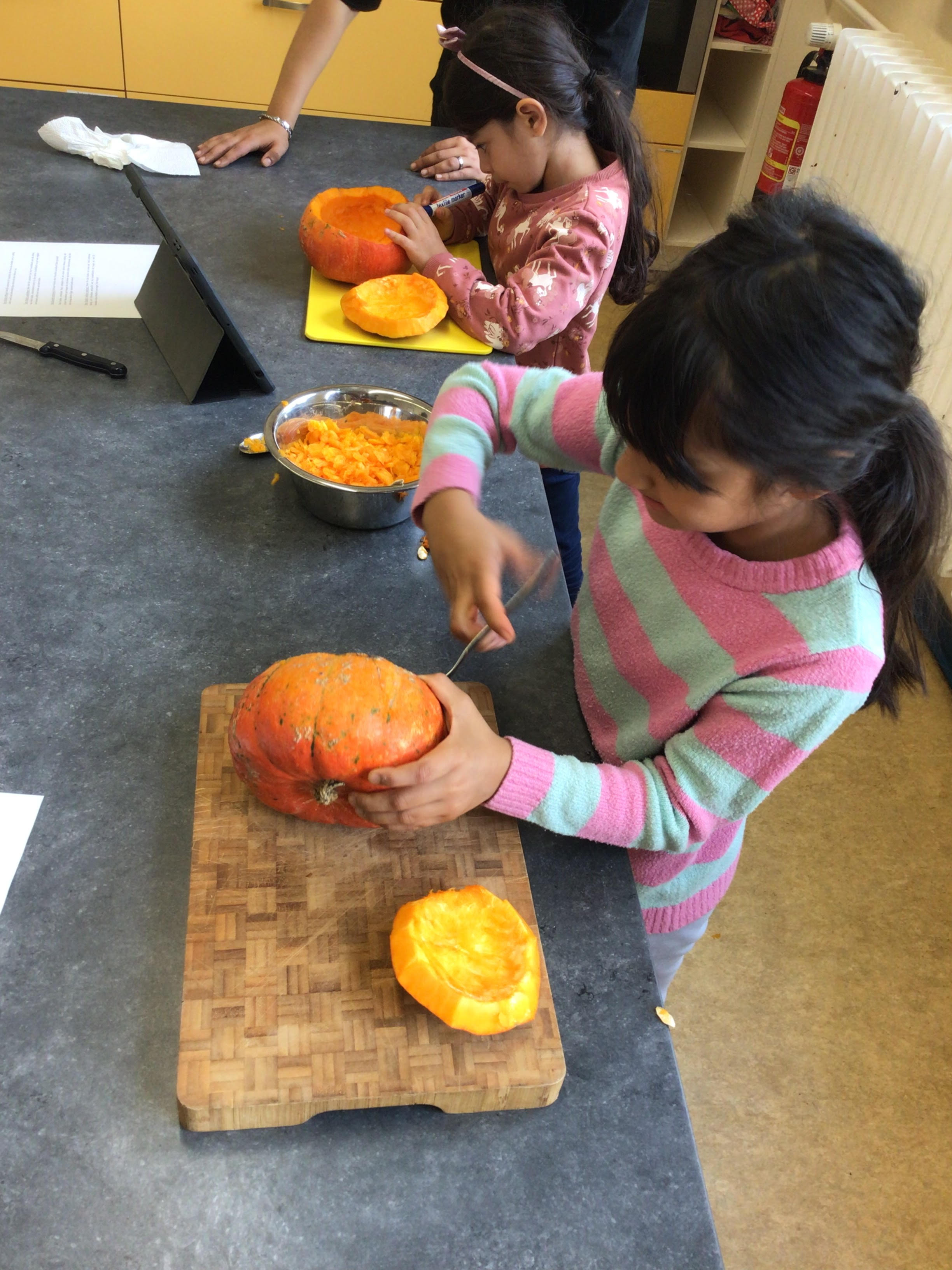 Dazu haben wir viele Äpfel geschält und klein geschnitten, um daraus einen leckeren Apfelmus zu zaubern.